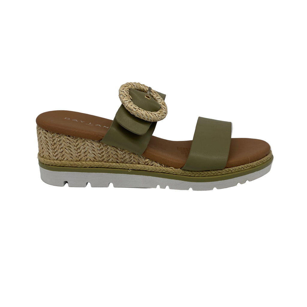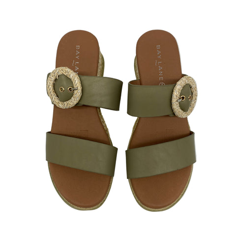 Embrace effortless summer style with Riverton in soft sage leather. Featuring broad straps, a statement woven buckle and a natural-textured wedge, it channels the season’s love of earthy tones and crafted details. Lightweight and versatile, it’s a sandal that blends comfort with on-trend design.